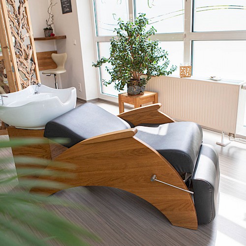 Das Herz meines Salons ist die Waschliege, wo Sie entspannt die Kopfhaut- und Haarreinigung genießen können. Durch das sehr bequeme Liegen sind Kopfmassagen und Gesichtsbehandlungen eine Wohltat.